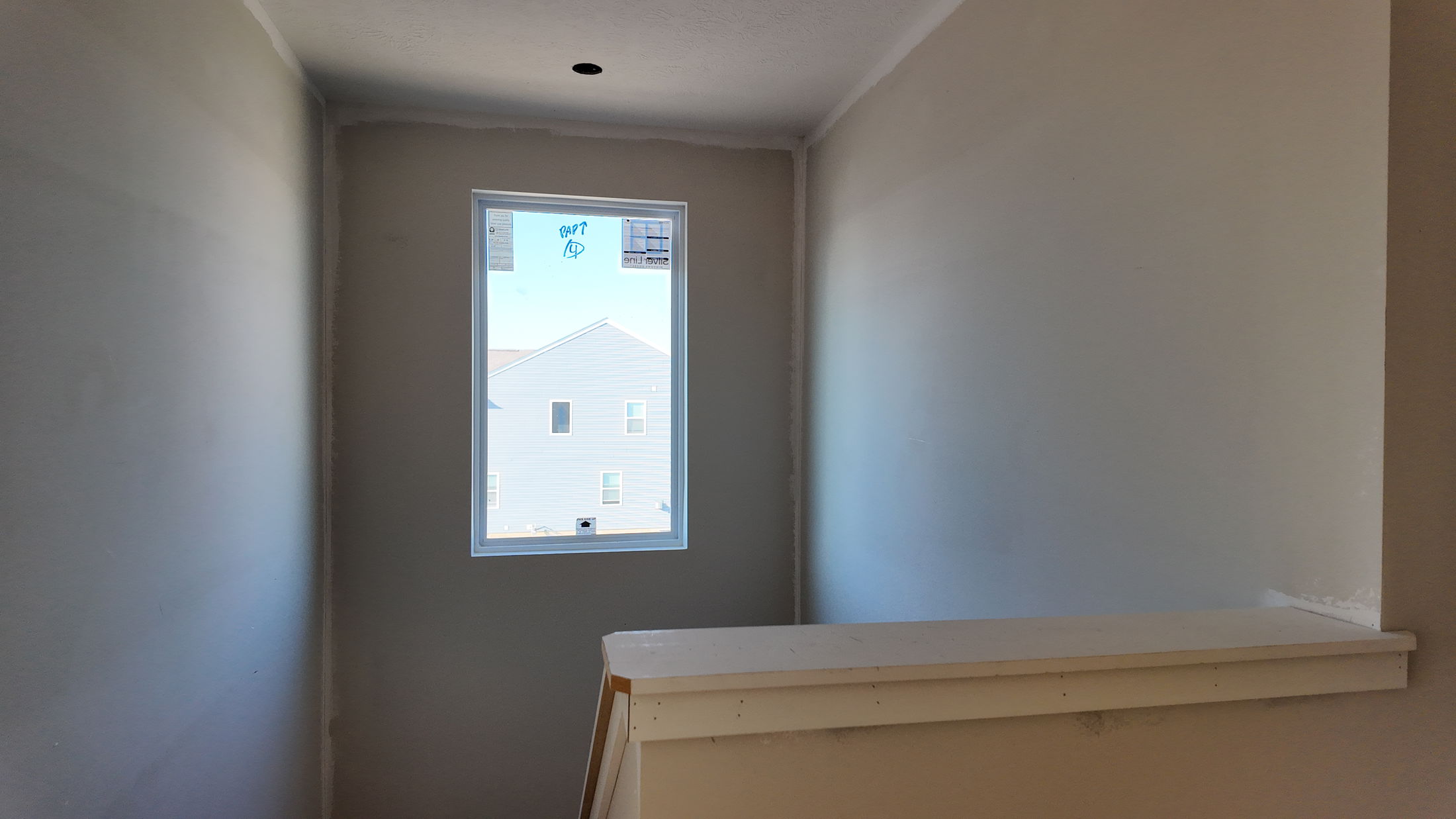 Partially constructed room featuring exposed wooden framing and a window, showcasing the early stages of residential construction.